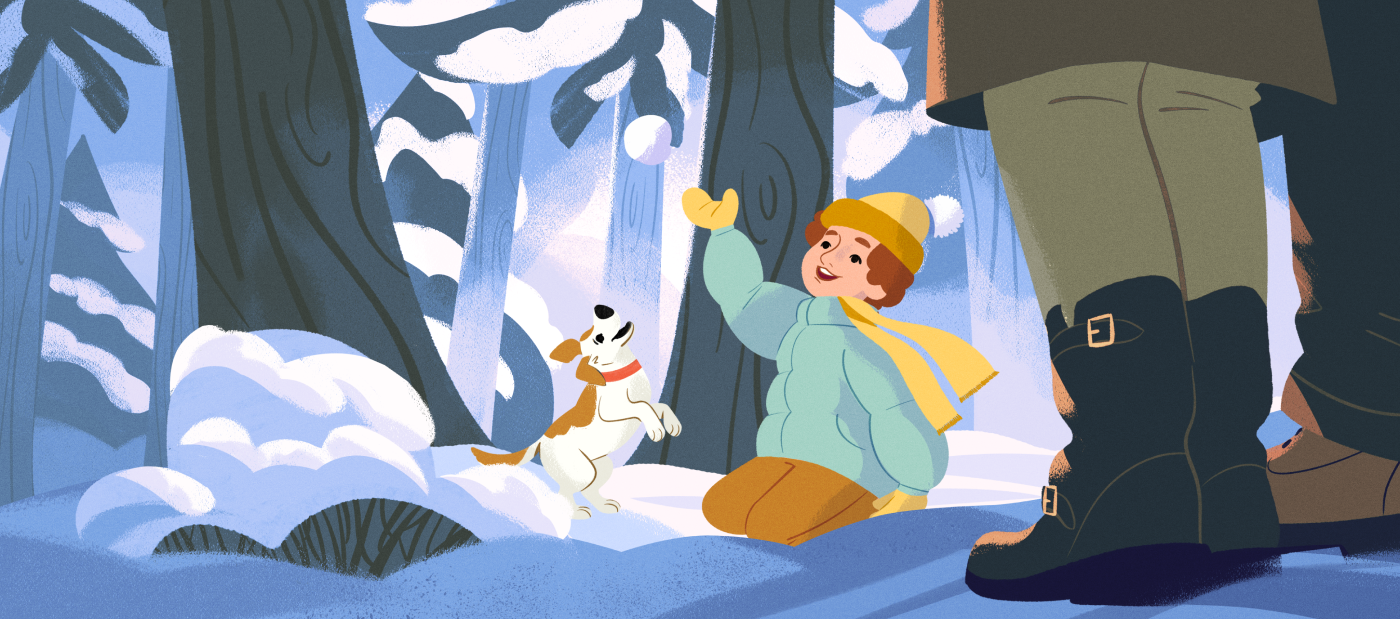 A very cheerful bright beginning of this story is portrayed in a sunny color scheme to emphasize the happy start of a cute and lovely friendship. We opted for a postcard look and hand-drawn animated fairytale to establish a feeling of ultimate happiness right away.