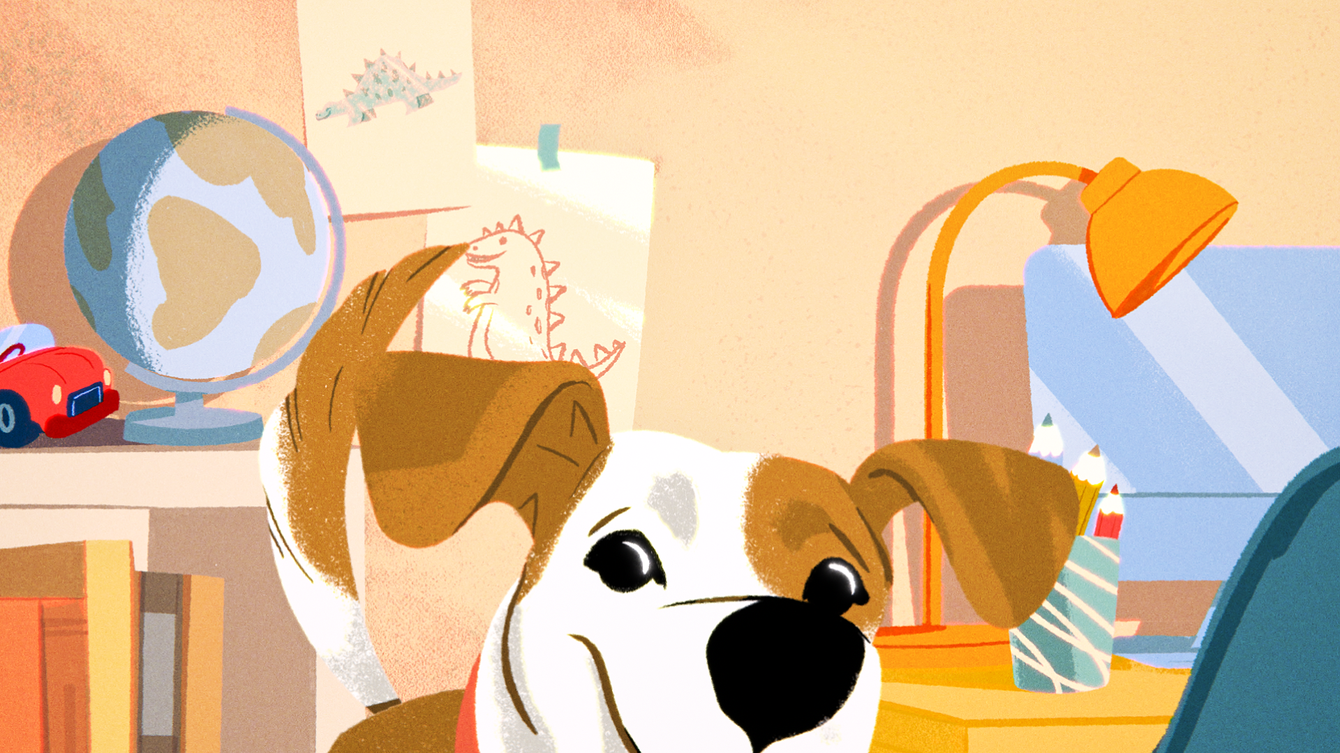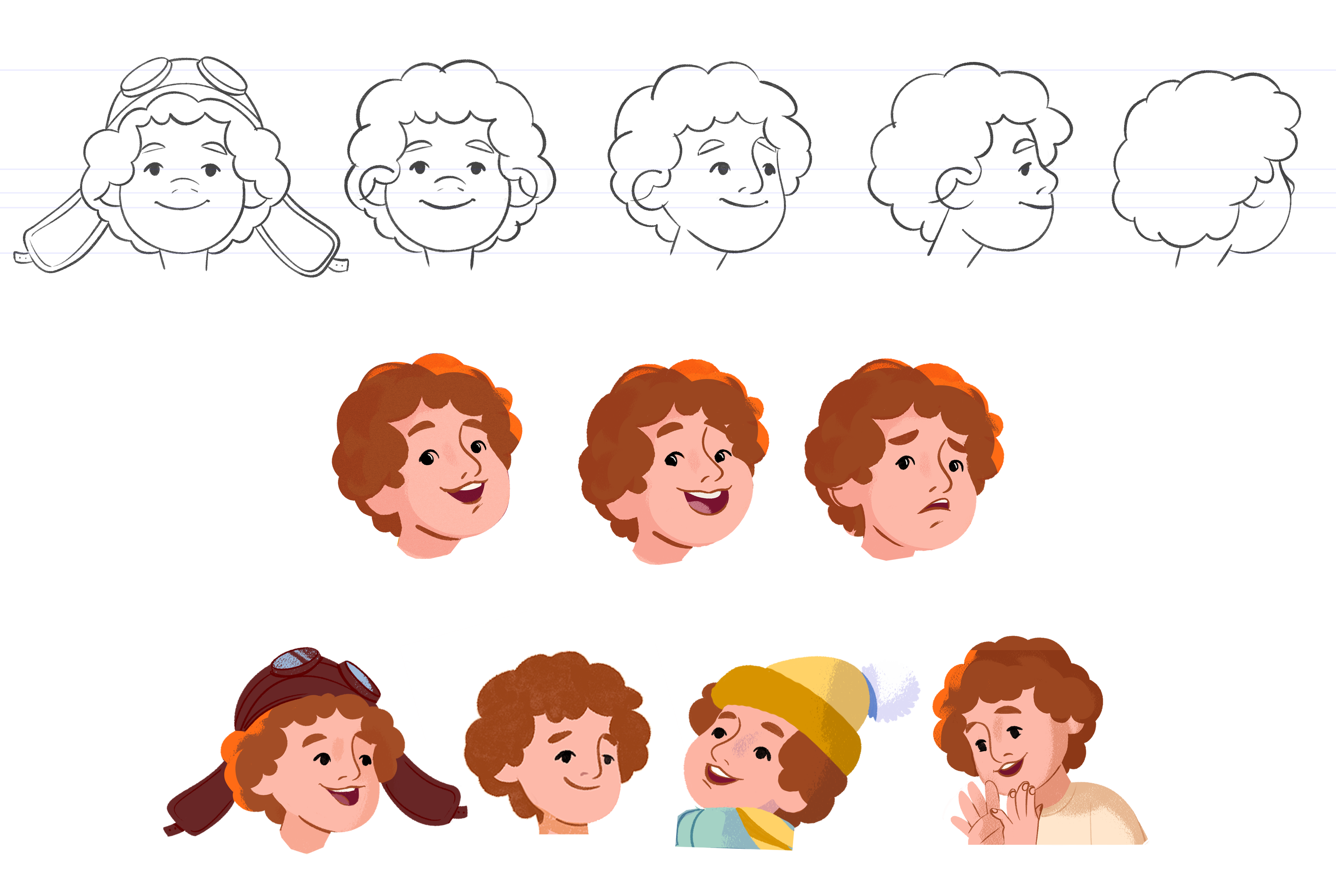 We chose a ginger boy and a pretty expensive ginger-colored Jack Russell puppy for this bestie story. They are an instant match both on the screen and between the frames. Both are well-behaved and have good family trees. We could afford lots of nice styling and outfits too. Jack Russell was a good companion for our animators too with the good old cel animation! A lively fit!